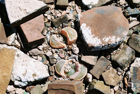 All wild Lithops are difficult to find, but L. viridis is among the most difficult, restricted as it is to a tiny evolutionary niche in the Northern Cape of the Republic of South Africa. Although the general location is widely documented, in the interests of conservation the specifics are not. What I can say is that the colony grows at a remote spot, and that there are people in the vicinity (one of whom is actually a policeman) who are thankfully protective of it. My lack of Afrikaans (the preferred language of many in this area) was a further complication to getting access to the plants, but through their local knowledge and wealth of contacts the Coles had smoothed the way.